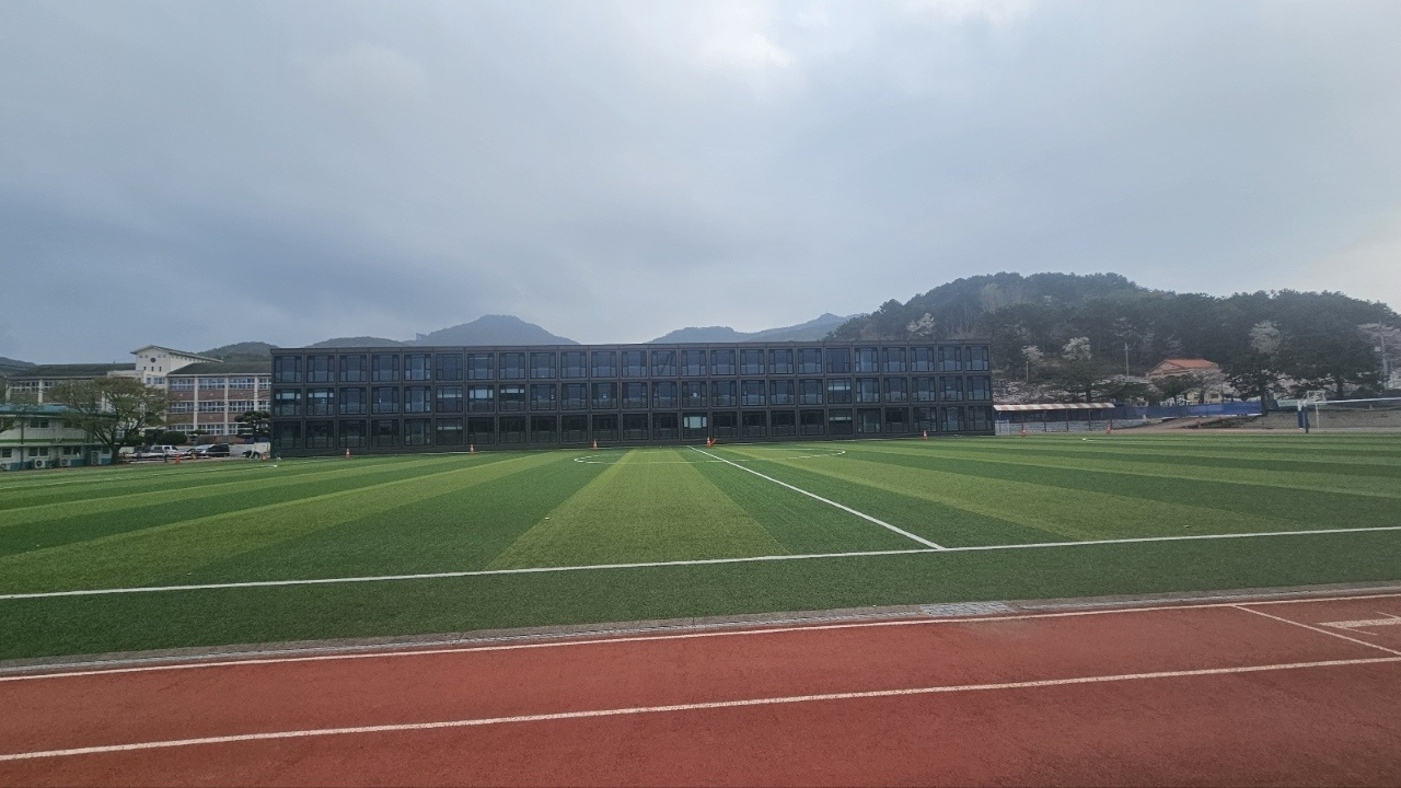 설치는 학생들의 등하교시간에 겹치지 않도록 하여 가급적 빠르고 안전하게 설치될 예정이며, 4월과 5월까지 두개의 업체가 순차적으로 설치예정입니다. 모듈러 교실에 대한 궁금하신 부분들이 많을 듯하여 해당 설치업체의 홍보자료를 첨부하니 참고하여 주시기 바랍니다. 아래의 사진은 현재 통영중학교 모듈러 교실 설치된 모습으로 저희학교에 설치하는 업체이므로 참고가 되실 듯 합니다.
